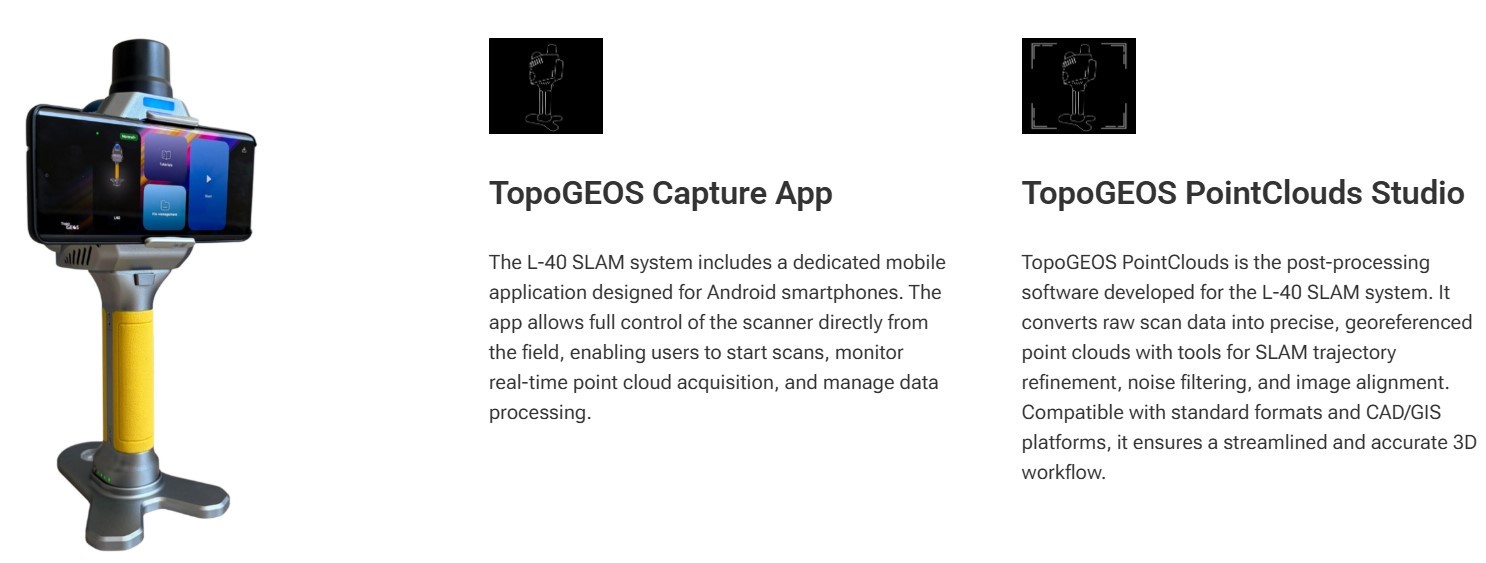 - Το L40 Handy SLAM είναι ένα ελαφρύ, πανίσχυρο και φορητό σύστημα SLAM, ιδανικό για Αποτυπώσεις εσωτερικών & εξωτερικών χώρων: