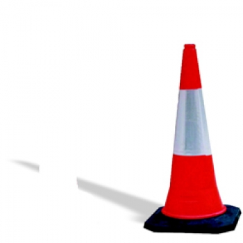 Κώνος οδοσήμανσης από πολυαιθυλένιο (PE) σε πορτοκαλί χρώμα, μαλακός με μία μεγάλη αντανακλαστική ταινία και μαύρη βάση