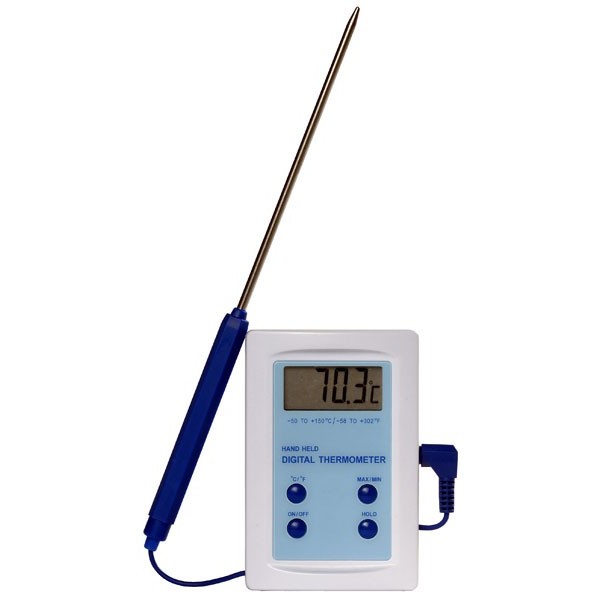 Max / Min ψηφιακό Θερμόμετρο με ευανάγνωστη οθόνη. Διαθέτει αποσπώμενο αισθητήρα διείσδυσης τροφίμων, με λειτουργίες max / min, Hold της μέτρησης στην οθόνη και μαγνήτη για στήριξη σε ηλεκτρική συσκευή.